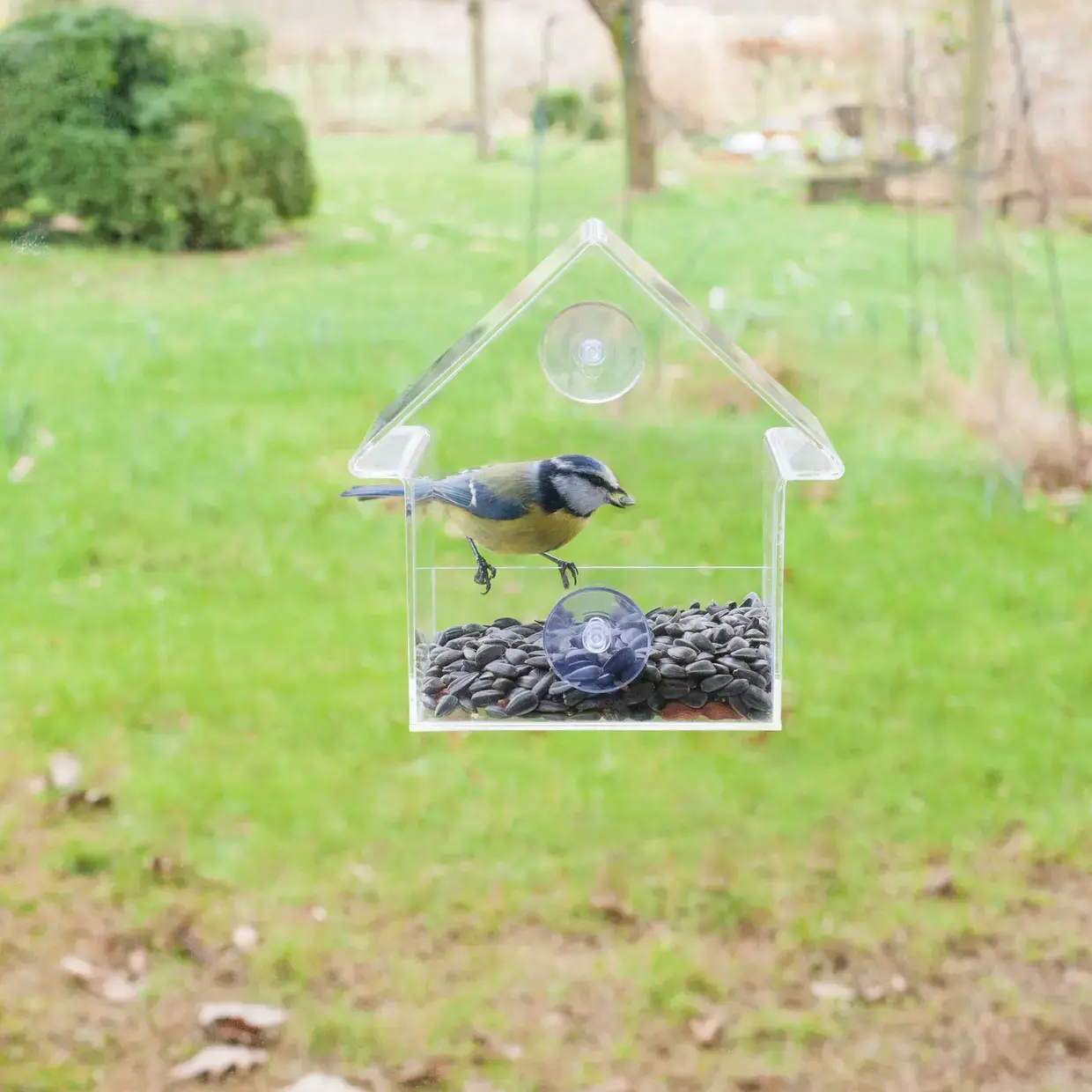 Zien wat er gebeurt aan de binnenkant van een huis. Deze moderne voederhuis heeft transparante wanden en dak, waardoor het zichtbaar wordt wat er zich binnenin afspeelt. Het voederhuis wordt met de bijgeleverde twee zuignappen op het raam geplaatst. Dankzij het doorzichtig materiaal is het mogelijk om van binnen te observeren hoe de vogels genieten van hun eten . Het materiaal is makkelijk schoon te maken.