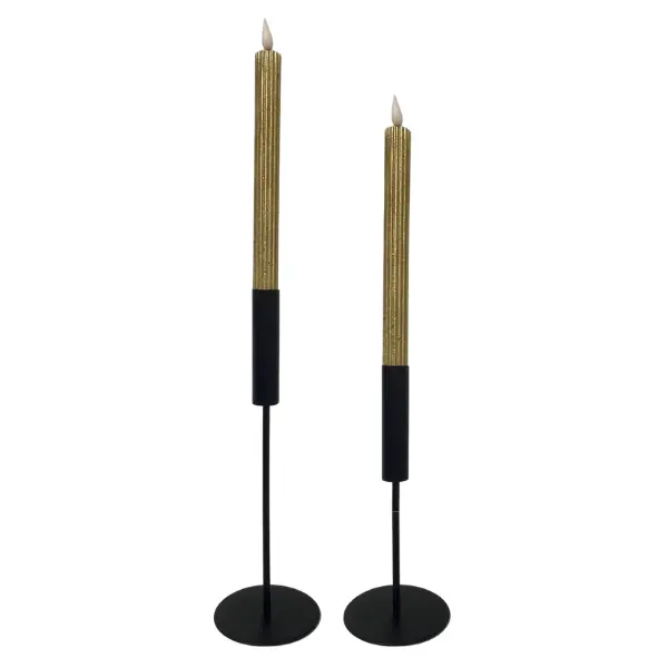 Actieset 2× Kandelaar met Gouden LED-Kaarsen – Zwart Metaal