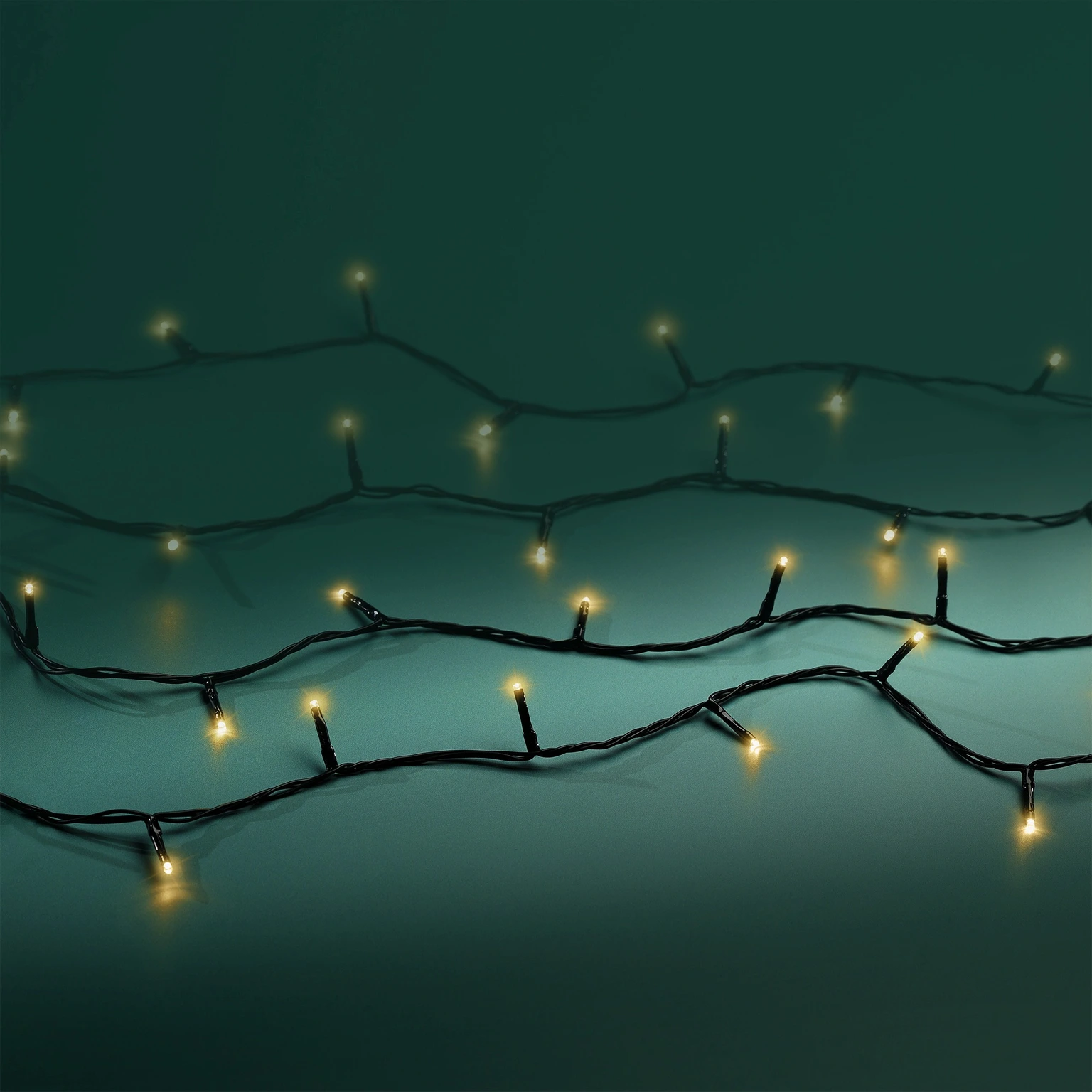 De Lumineo Basic LED Lights combineren energiezuinigheid met een sfeervolle uitstraling. Dankzij de timer- en dimmerfunctie kun je de verlichting eenvoudig aanpassen aan jouw wensen. Het zachte gouden licht creëert een warme en uitnodigende sfeer, perfect voor de feestdagen. Bovendien is het snoer geschikt voor zowel binnen- als buitengebruik, zodat je het overal kunt toepassen.