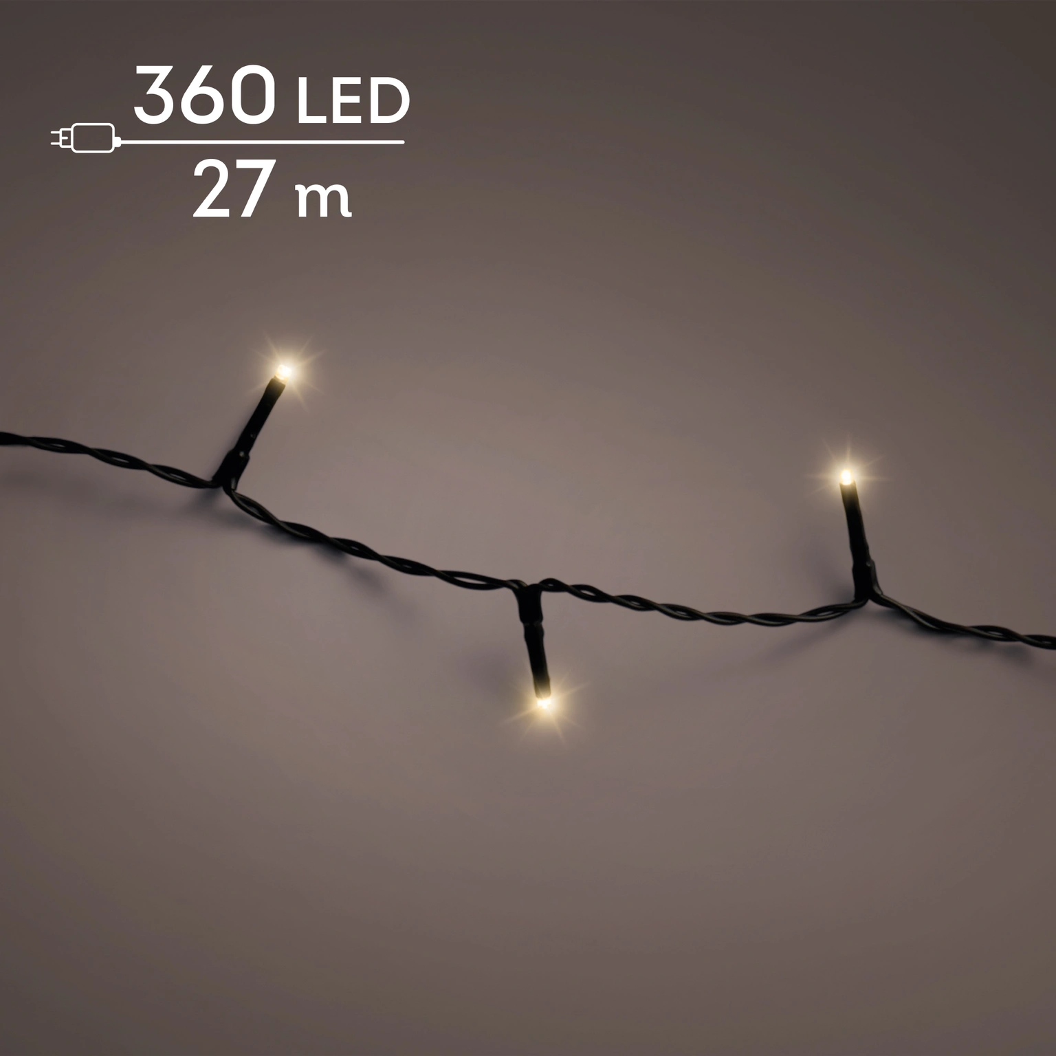 Breng een warme en feestelijke sfeer in huis met de Lumineo Basic LED Lights. Dit lichtsnoer bevat maar liefst 360 energiezuinige LED-lampjes met een zachte gouden gloed, ideaal voor het verlichten van je kerstboom, trapleuning, raamkozijnen of andere decoratieve elementen. Het snoer heeft een lengte van 27 meter, waardoor het geschikt is voor zowel kleine als grote ruimtes.