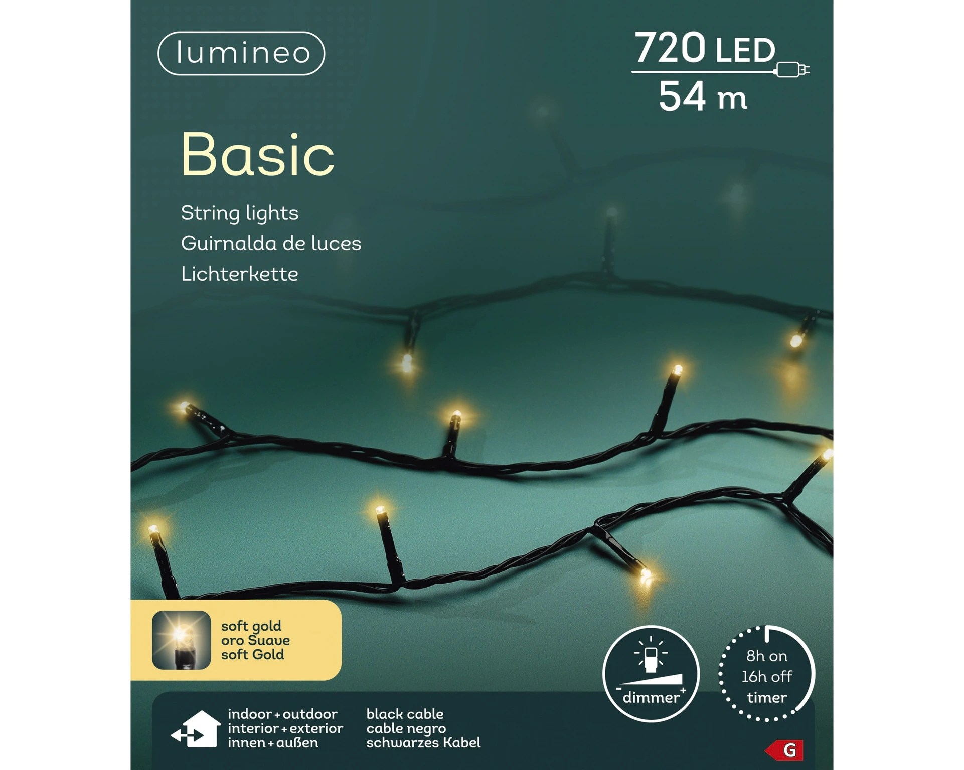 Breng een warme en feestelijke sfeer in huis met de Lumineo Basic LED Lights. Dit lichtsnoer bevat maar liefst 720 energiezuinige LED-lampjes met een zachte gouden gloed, ideaal voor het verlichten van je kerstboom, trapleuning, raamkozijnen of andere decoratieve elementen. Het snoer heeft een lengte van 54 meter, waardoor het geschikt is voor zowel kleine als grote ruimtes.