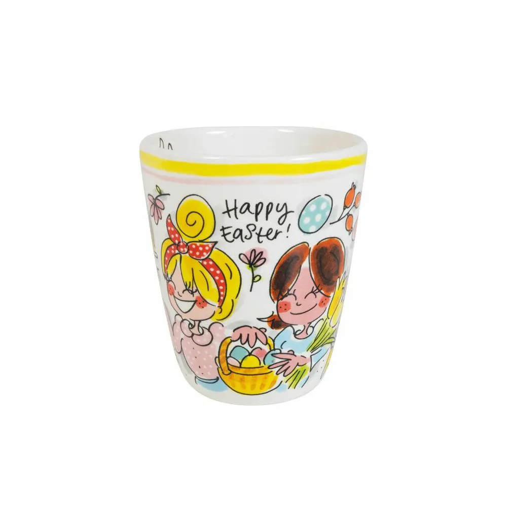 In deze vrolijke beker schenk je warme thee. Op de beker staan gezellige paasillustraties, zoals bloemen, eitjes en cake. In de Paascollectie hebben we ook minimokken, ontbijtborden, kommetjes, ovale schalen en eierdopjes.
