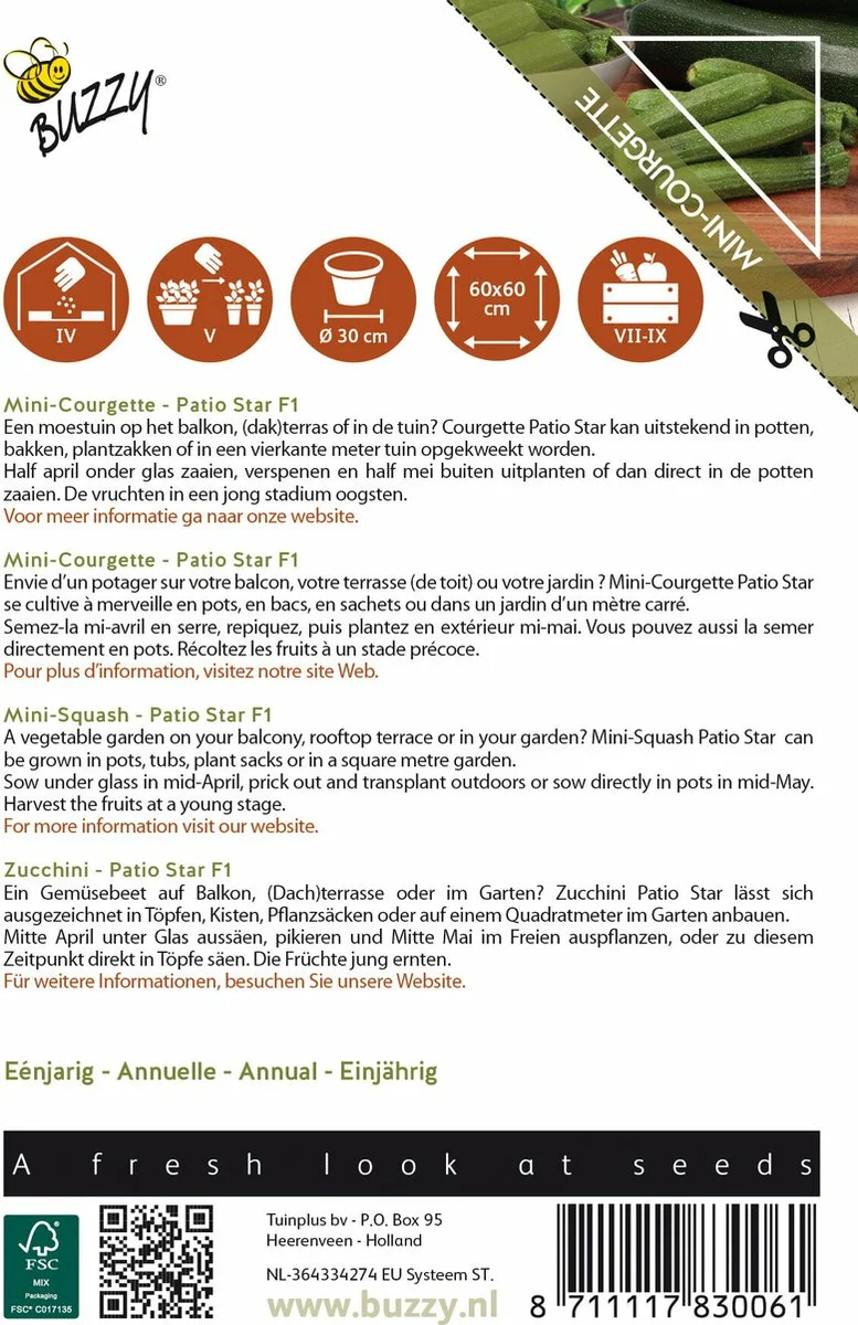 Ben je op zoek naar het product Buzzy® zaden - Courgette Patio Star F1? Bij de Tuinwinkel Online vind je producten van Buzzy® en nog vele andere interieur- en tuinartikelen. Bestel product Buzzy® zaden - Courgette Patio Star F1 voor 4.79 eenvoudig in onze webshop of bezoek ons tuincentrum, GroenRijk 't Haantje in Rijswijk.