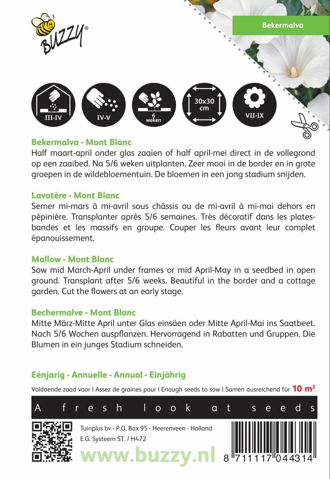 Buzzy® zaden - Lavatera, Bekermalva Mont Blanc