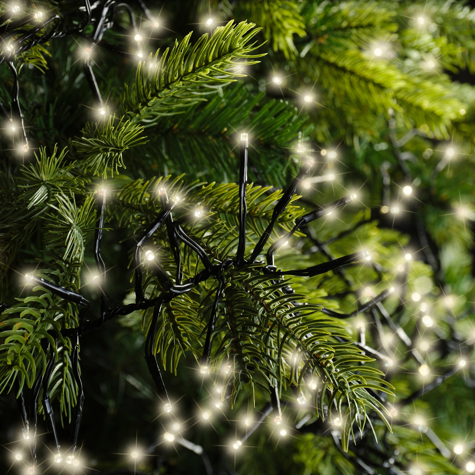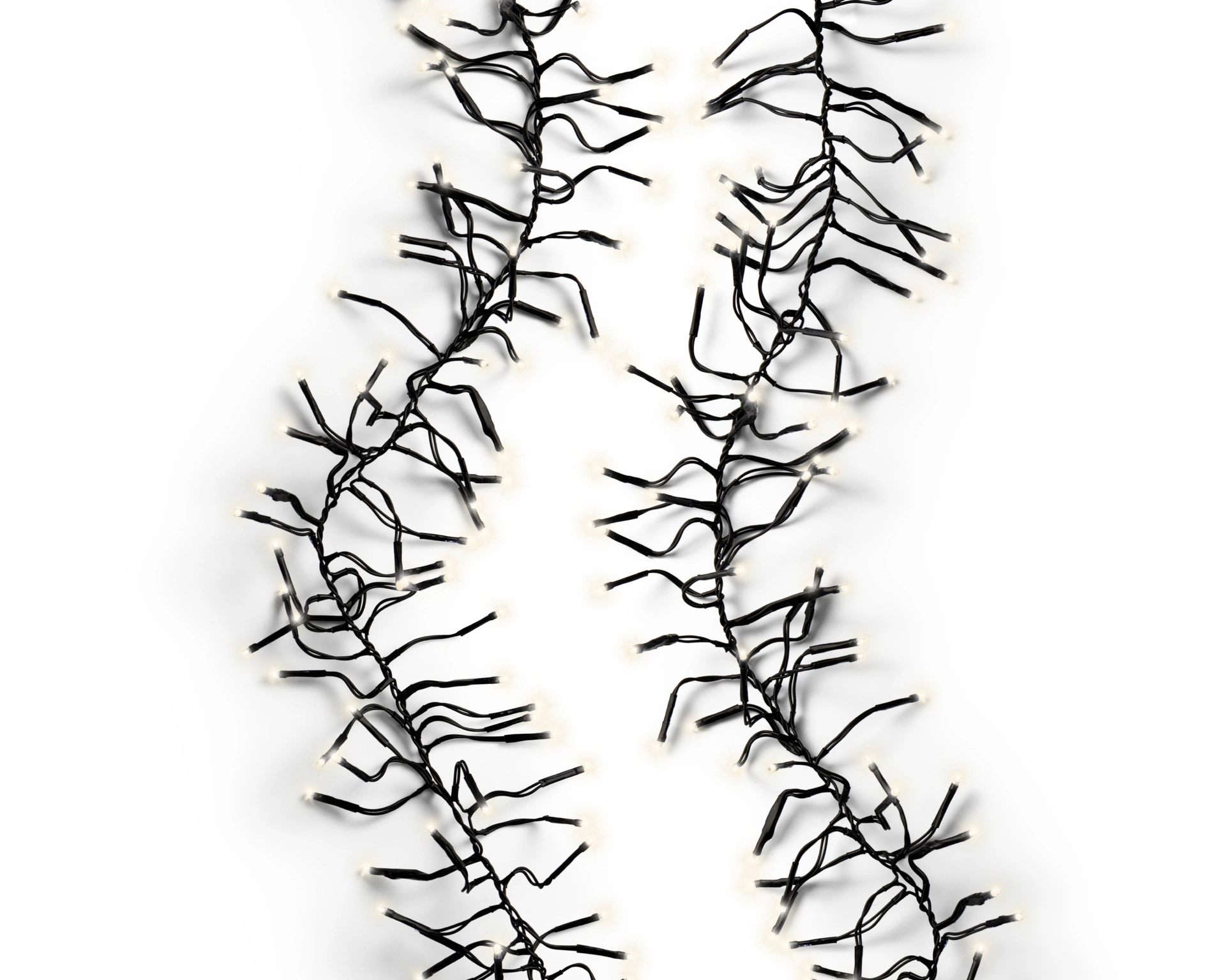 LED clusterverlichting buiten/binnen 448 leds warm wit. De verlichte lengte is 3 meter en 5 meter van de stekker tot het eerste lampje.
