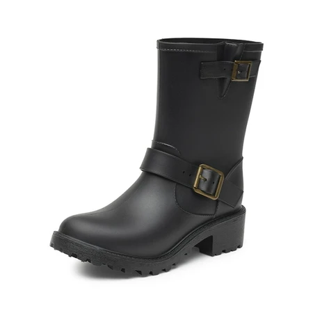 De Noor regenlaars is een stijlvolle regenlaars gemaakt van hoogwaardig PVC. Het materiaal is volledig waterdicht en bovendien slijtvast. De laars heeft een elegante look dankzij de verhoogde hak en decoratieve gespen. De regenlaarzen zijn ideaal voor alledaags gebruiken en beschermen uitstekend tegen de regen of natte ondergronden.