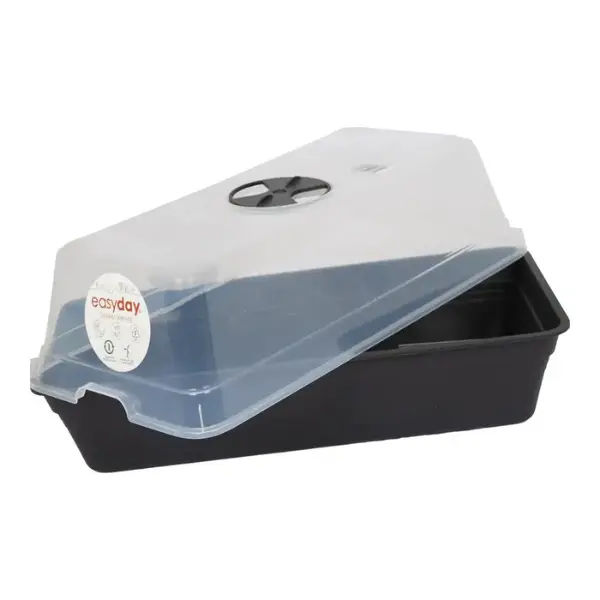 De transparante deksel zorgt voor een stabiel microklimaat waarin warmte en vocht goed worden vastgehouden. De zwarte onderbak draagt bij aan het vasthouden van warmte, wat de groei van zaailingen stimuleert.