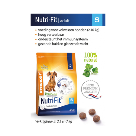 Fokker Hondenvoer Nutri-Fit S - Voor volwassen honden kleine rassen - 2,5kg