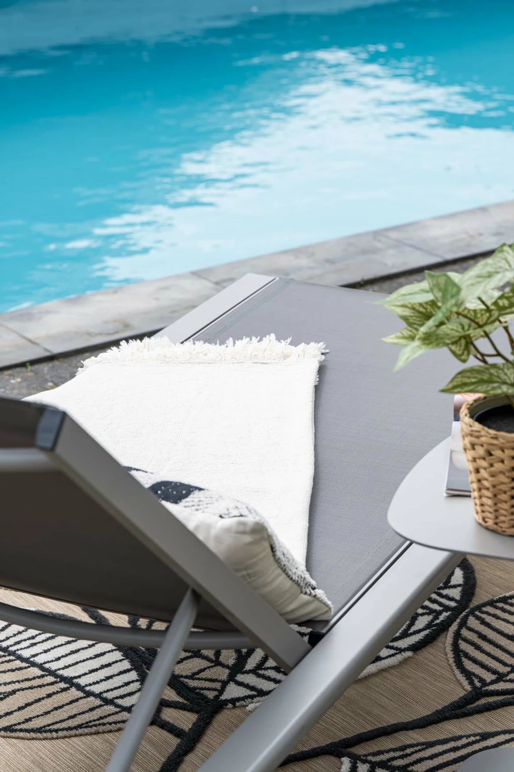 Combineer het ligbed met een bijzettafel en creëer een fijne plek om te genieten van zonnige dagen, een goed boek of een verkoelend drankje.