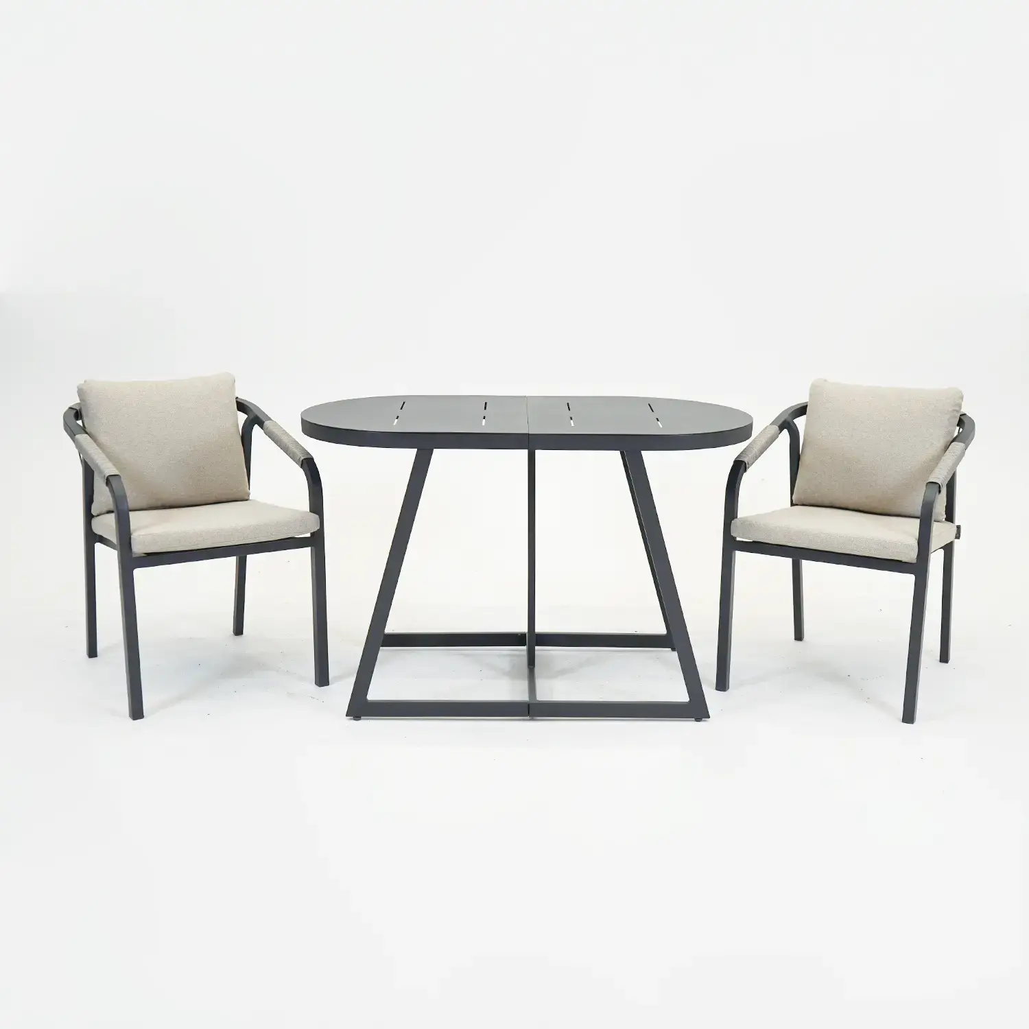 - Samenstelling: Twee stoelen en een aluminium tafel