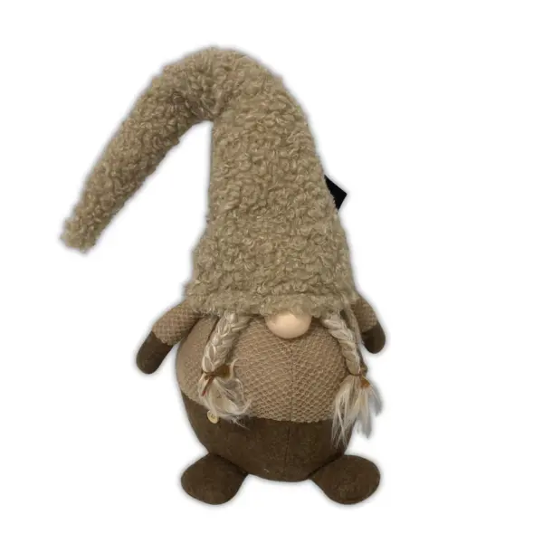 Deze gezellige gnoom brengt direct warmte in huis met zijn zachte beige kleuren en charmante uitstraling. Zijn lange, gekrulde muts en baard of vlechtjes geven hem/haar een knusse, winterse look die perfect past bij de herfst- en kerstperiode.