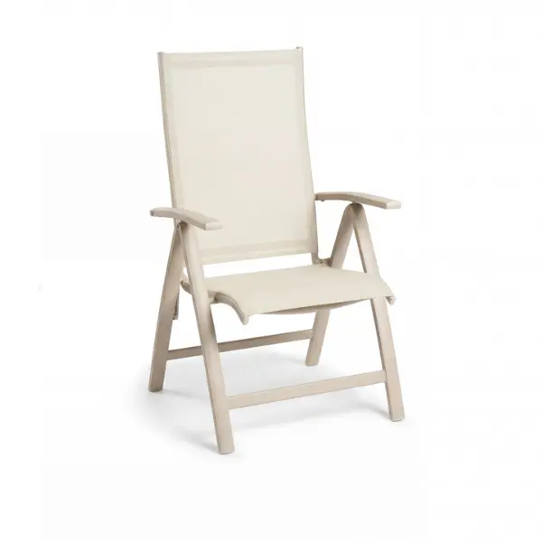 De Tierra Outdoor Ernesto is een inklapbare stoel met verstelbare rug/armleuning. De stoel heeft een aluminium frame en een textileen zitting en rugleuning. Deze standenstoel is weersbestendig en onderhoudsarm.