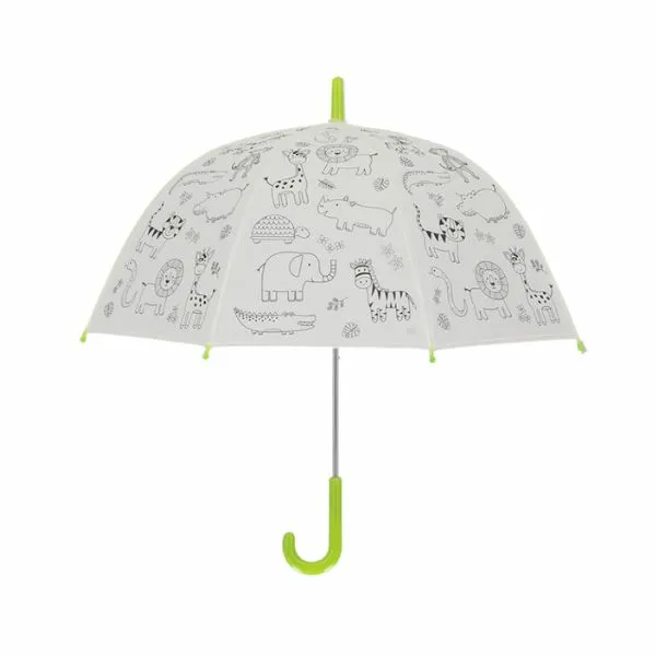 Maak van wandelen in de regen een feestje! Deze 'Paint it Yourself' paraplu met jungleprint is helemaal naar wens in te kleuren! De paraplu is voorzien van stiften, waarmee de paraplu kan worden ingekleurd. Laat kinderen een eigen creatie maken. De afmeting en het gebruik zijn speciaal op kinderhanden afgestemd.