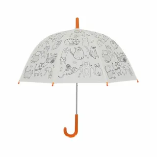 Maak van wandelen in de regen een feestje! Deze 'Paint it Yourself' paraplu met poezen is helemaal naar wens in te kleuren! De paraplu is voorzien van stiften, waarmee de paraplu kan worden ingekleurd. Laat kinderen een eigen creatie maken. De afmeting en het gebruik zijn speciaal op kinderhanden afgestemd.