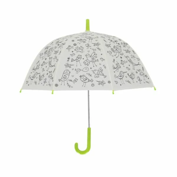 Maak van wandelen in de regen een feestje! Deze 'Paint it Yourself' paraplu met vogels is helemaal naar wens in te kleuren! De paraplu is voorzien van stiften, waarmee de paraplu kan worden ingekleurd. Laat kinderen een eigen creatie maken. De afmeting en het gebruik zijn speciaal op kinderhanden afgestemd.