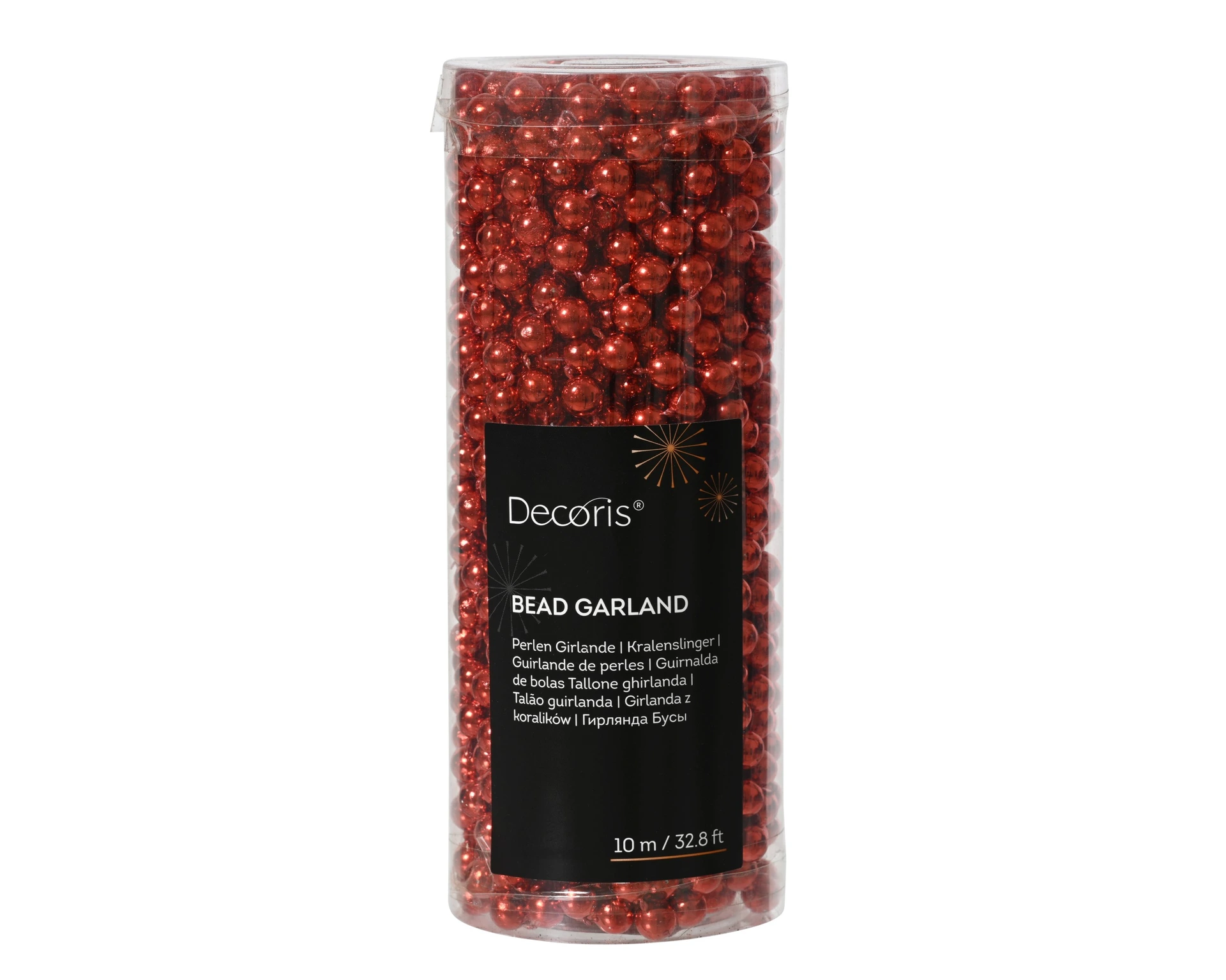 Versier je kerstboom of interieur met deze elegante kralenslinger in kerstrood. De kunststof kralen hebben een diameter van 8 mm en zijn met een lengte van 10 meter ideaal voor het creëren van een luxe uitstraling. Dankzij de glanzende afwerking reflecteren de kralen het licht prachtig, waardoor ze zowel overdag als 's avonds een sfeervol effect geven.