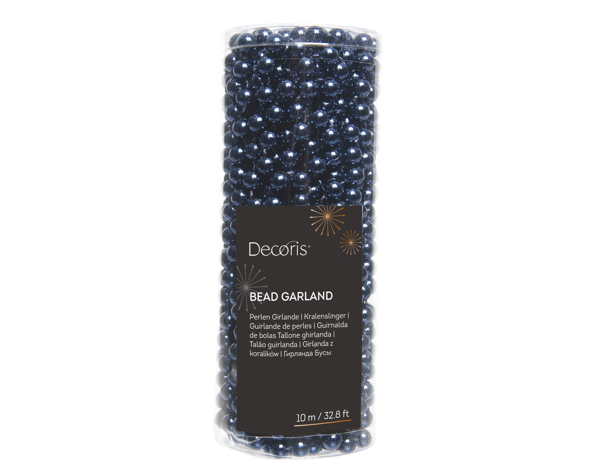 Versier je kerstboom of interieur met deze elegante kralenslinger in nachtblauw. De kunststof kralen hebben een diameter van 8 mm en zijn met een lengte van 10 meter ideaal voor het creëren van een luxe uitstraling. Dankzij de glanzende afwerking reflecteren de kralen het licht prachtig, waardoor ze zowel overdag als 's avonds een sfeervol effect geven.