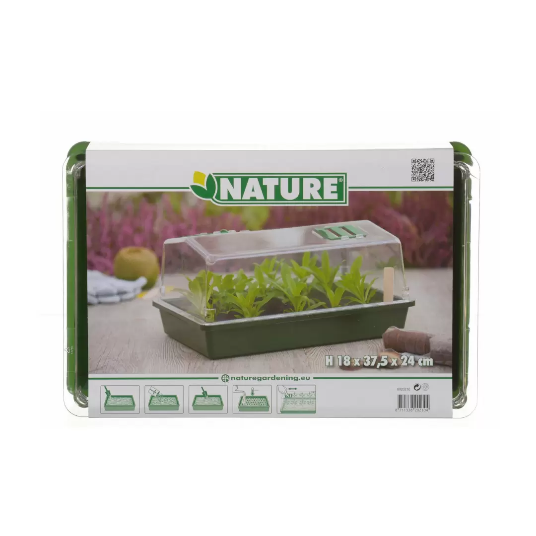 - Compact formaat: De afmetingen van de kweekbak (exclusief deksel) zijn 38x24x6cm, ideaal voor op de vensterbank of in een klein tuinhuis.