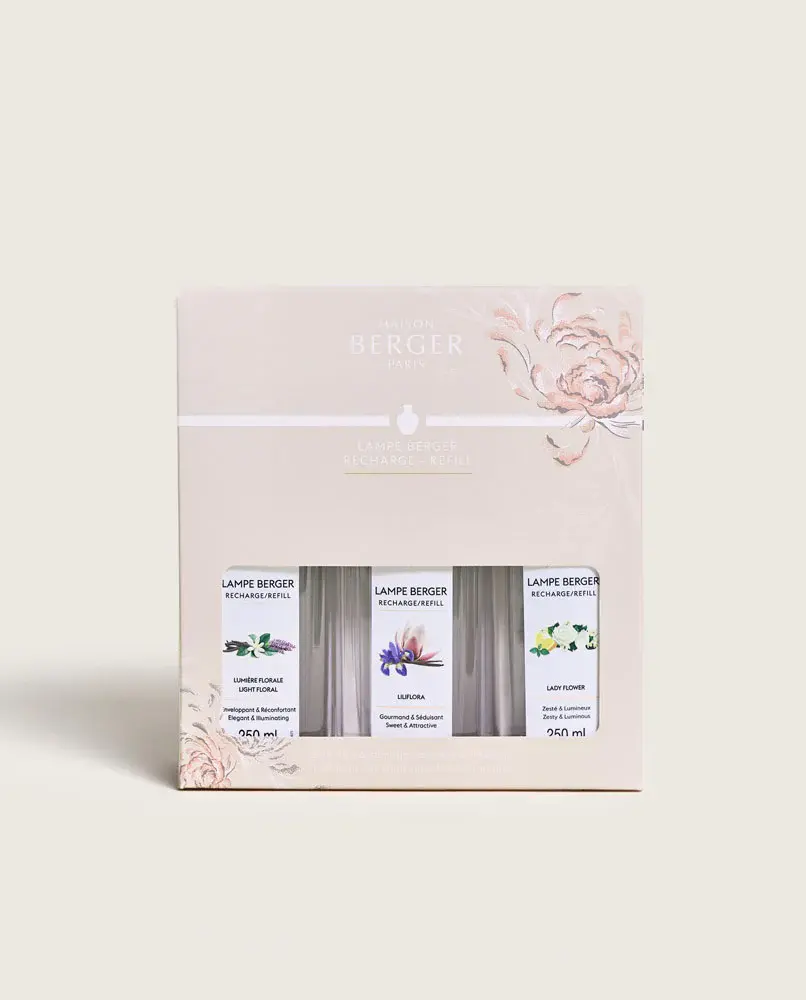 Ontdek drie bloemige topgeuren met dit triopack: Lumière Florale, Lady Flower en Liliflora, waarmee u de sfeer in huis telkens vernieuwt.