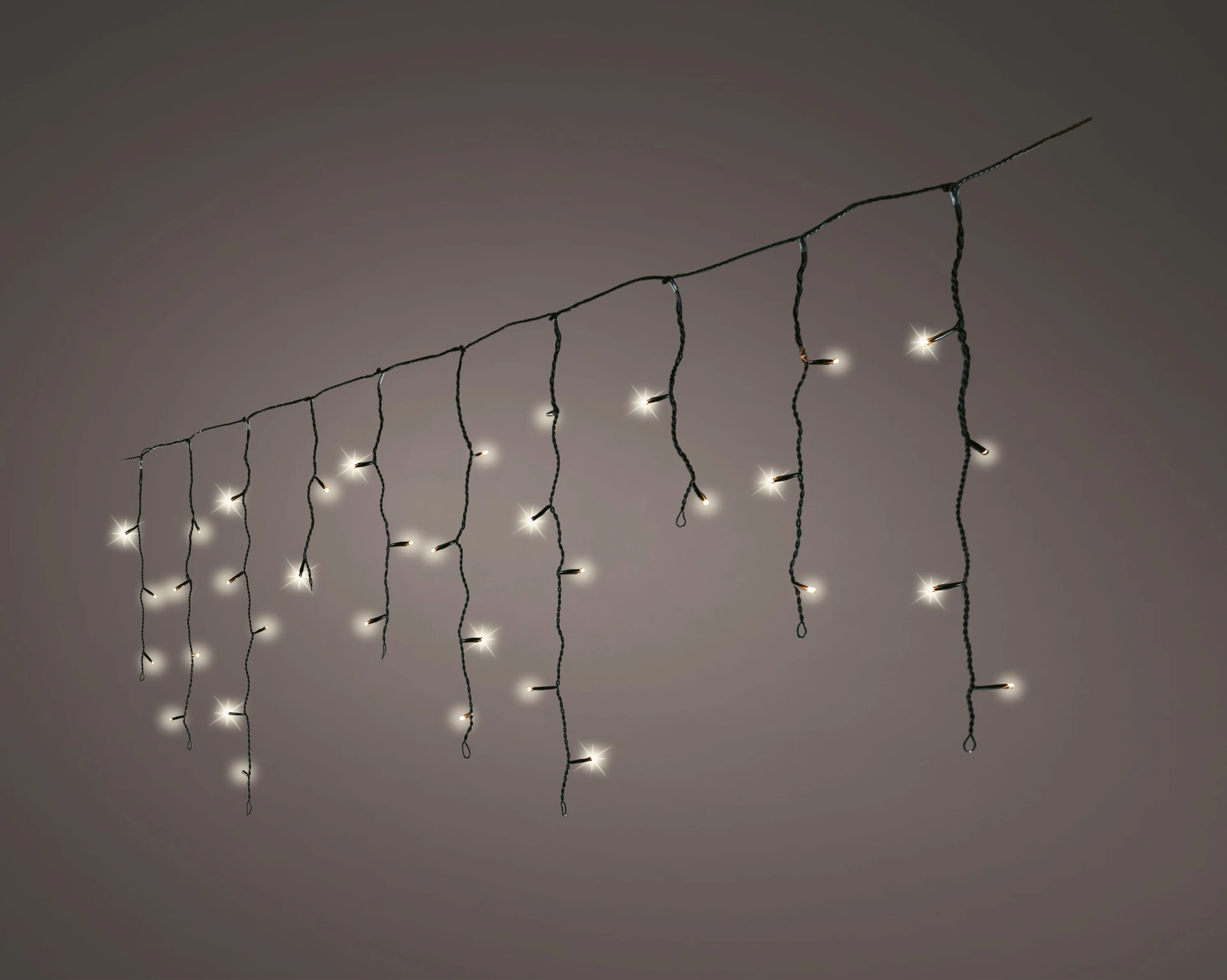 De Icicle twinkle led verlichting van Lumineo is een zwart lichtsnoer met verlichting in de kleur klassiek warm. De warme, gele kleur van het licht zorgt voor sfeer in iedere ruimte! Zowel binnen als buiten te gebruiken, versier je kerstboom, heg, tuin, woonkamer, voordeur of een ander creatief object met dit lichtsnoer. De mogelijkheden zijn eindeloos! Met de handige timerfunctie kun je de lampjes 8 uur laten branden en 16 uur uitzetten. Het lichtsnoer heeft een 'twinkel effect' dat je zelf kunt instellen op een gewenste stand, er is keuze uit acht verschillende twinkelede standen.