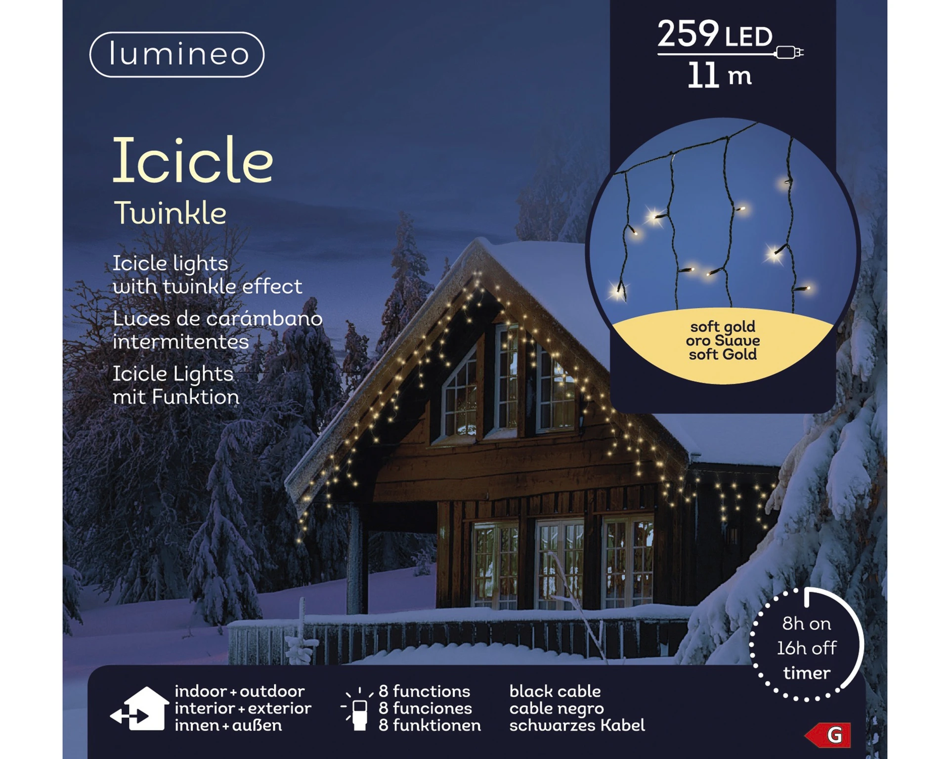 LED Icicle Lights Twinkle Lumineo - 259 lampjes Soft Gold