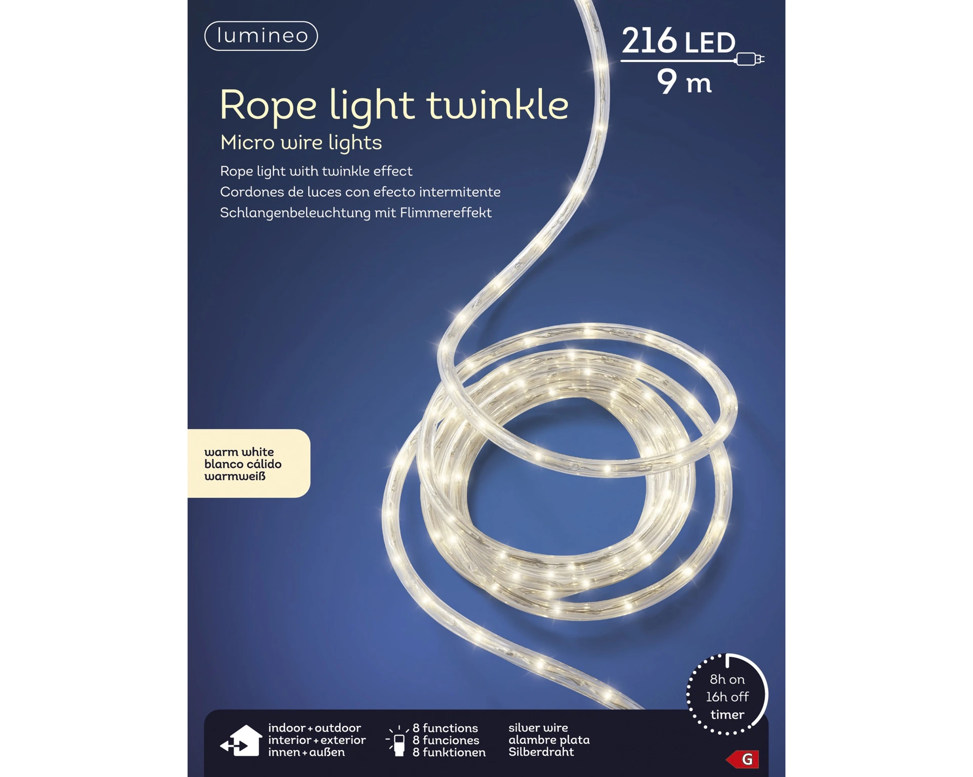 LED touw light twinkle buiten/binnen 9m. De verlichte lengte is 9 meter en 5 meter van de stekker tot het eerste lampje.
