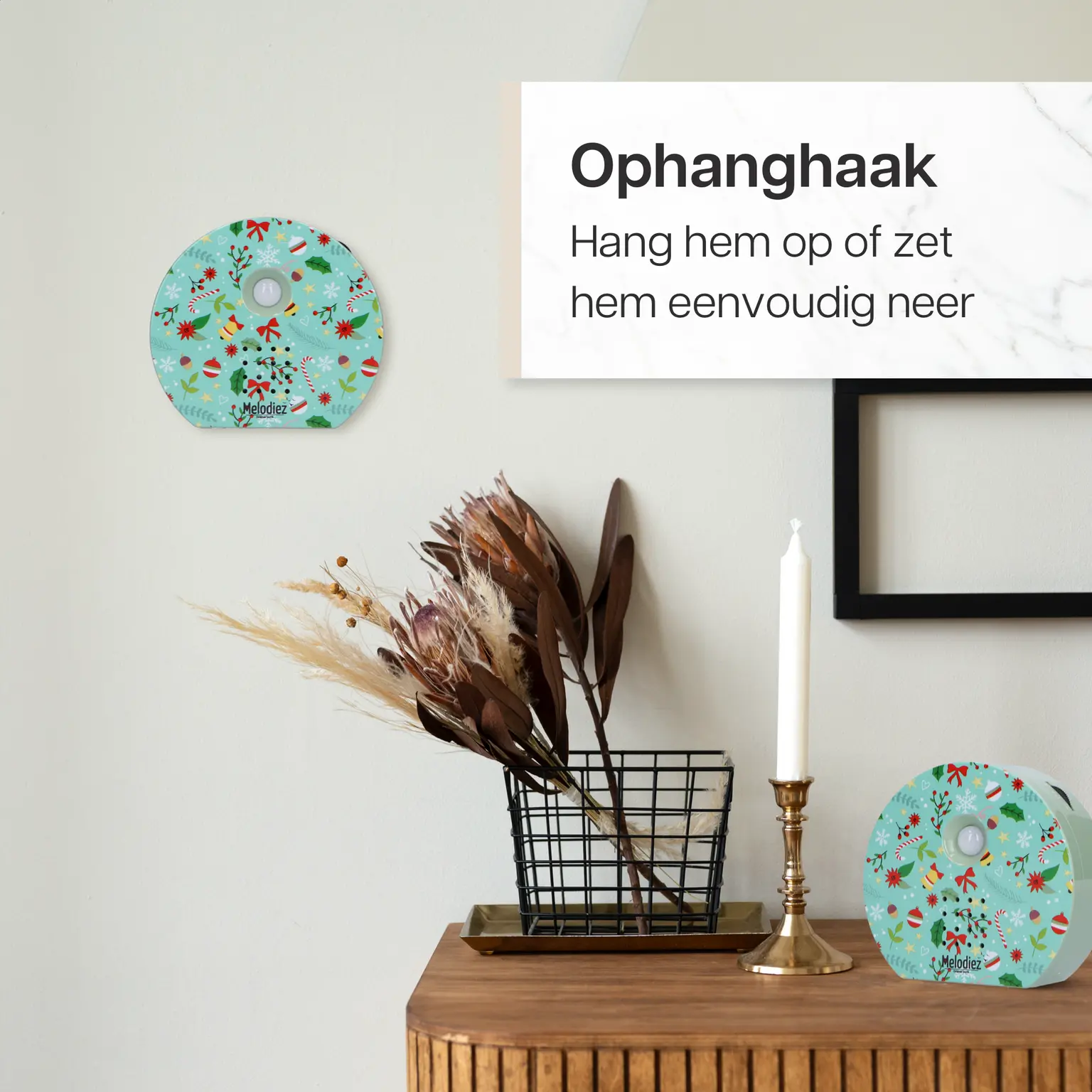 Met de Melodiez Christmas Sounds geluidsbox ontstaat in een oogwenk een gezellige en feestelijke kerstsfeer. Zodra iemand binnenkomt, klinkt er een warme kerstmelodie of een vrolijke kerstboodschap van de kerstman. Een kleine verrassing met een groot effect, perfect om bezoekers welkom te heten tijdens de feestdagen.