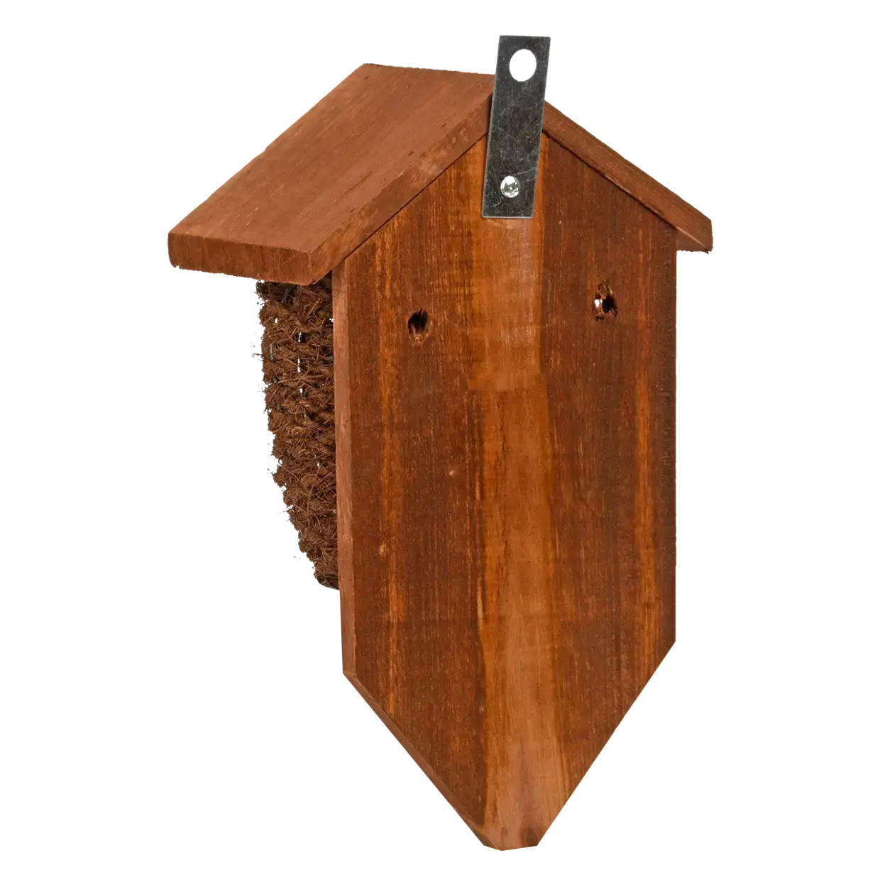 Deze traditionele nestbuidel met kokosharen biedt de Winterkoning een goede plek om in te nesten, om populaties van deze vogelsoort te behouden of weer terug te krijgen in een gebied. Daarnaast bewijst de nestbuidel een goede dienst voor vogels om te schuilen tegen het slechte weer in de winter Plaats de buidel aan een boom of muur, op een hoogte tot max. 2 meter, op een goed verborgen plek tussen dicht struikgewas of klimopplanten, op een rustige en enigszins beschutte plaats, dus niet pal in de zon of op de regenzijde, met een vrije aanvliegroute voor de vogel.