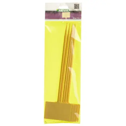 Label van gele harde kunststof van Nature voor het duidelijk bemoemen van planten en bloemen in de tuin. Het grote schrijfplaatje heeft een afmeting van 5,5 x 8,5 cm. Verpakt per 5 stuks.