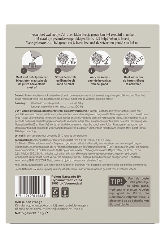Schrijf zelf een recensie over "Pokon Mediterrane Planten Mest 1kg"