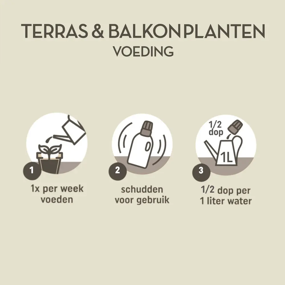 Pokon Terras & Balkon Planten Voeding helpt je planten om mooie groene bladeren en veel bloemen te krijgen. Deze voeding heeft belangrijke voedingsstoffen, sporenelementen en extra humus. Hierdoor krijgen je planten alles wat ze nodig hebben om goed te groeien en bloeien. Na 7 dagen zie je al resultaat en je planten groeien en bloeien 2 keer zoveel als planten zonder voeding. Zo blijven je terras- en balkonplanten sterk en gezond!