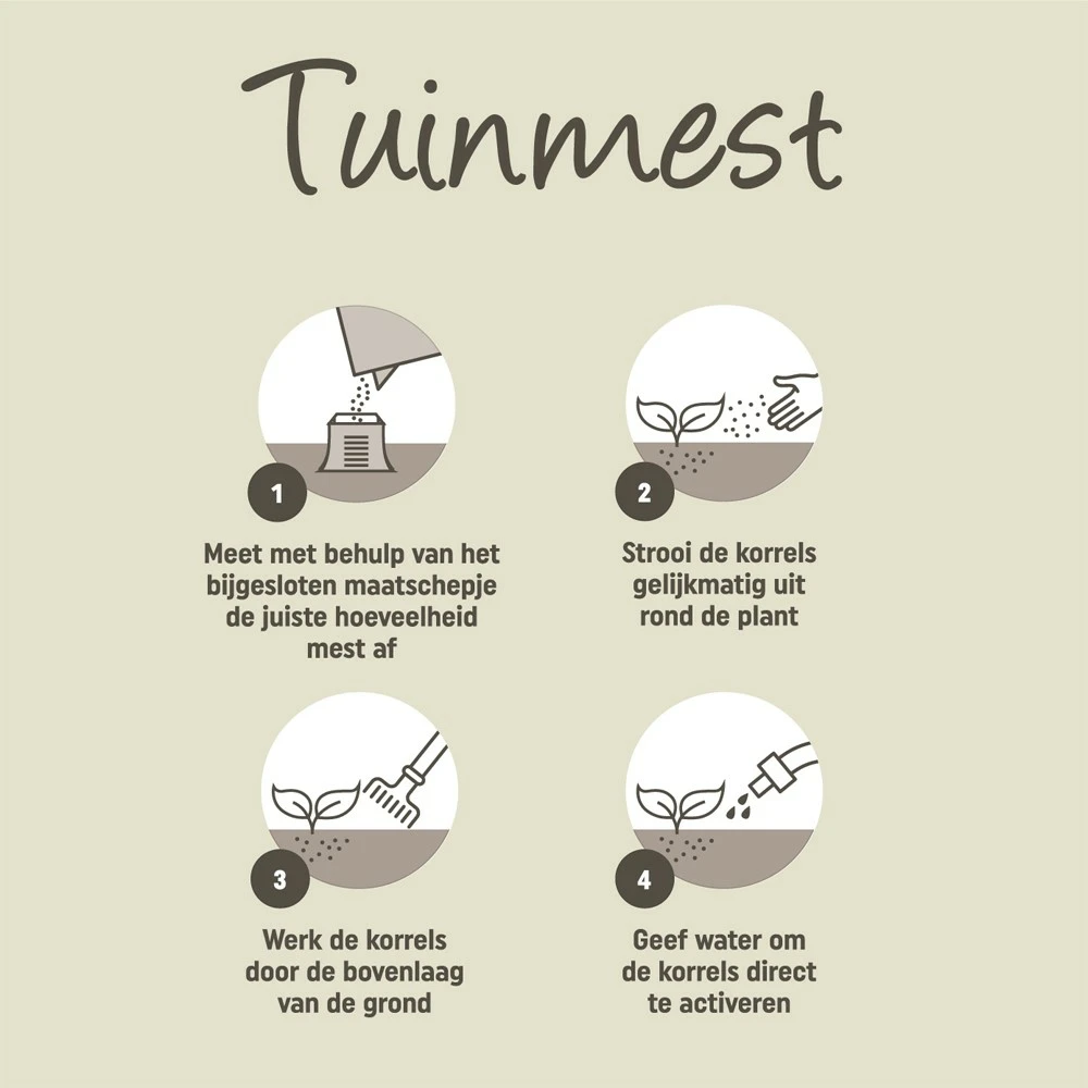 Pokon Tuinmest, verrijkt met in de natuur voorkomende mineralen (zeoliet en algen), voedt de plant en verbetert de grond. De organische voeding zorgt ervoor dat je tuinplanten goed groeien, bloeien en meer weerstand krijgen. Door de extra toevoeging van Magnesium (MgO) en IJzer (Fe) worden je planten mooier, extra groen en bloeien ze intenser.
