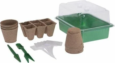 De set bevat verschillende potjes en bakjes, zodat je verschillende zaadjes afzonderlijk van elkaar kan planten. Om verwarring te voorkomen kun je gebruik maken van de naamplaatjes die je eenvoudig, zonder de plant te schaden, in de potgrond kunt steken. Op deze manier weet je exact welke planten aan het bloeien zijn.