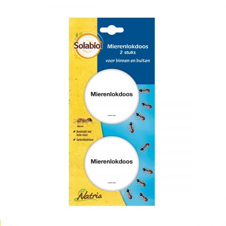 De Solabiol mierenlokdoos bestaat voor 100% uit natuurlijke actieve stoffen. De mierenlokdoos is bestemd voor de bestrijding van mieren en kan zowel binnen als buiten worden toegepast.