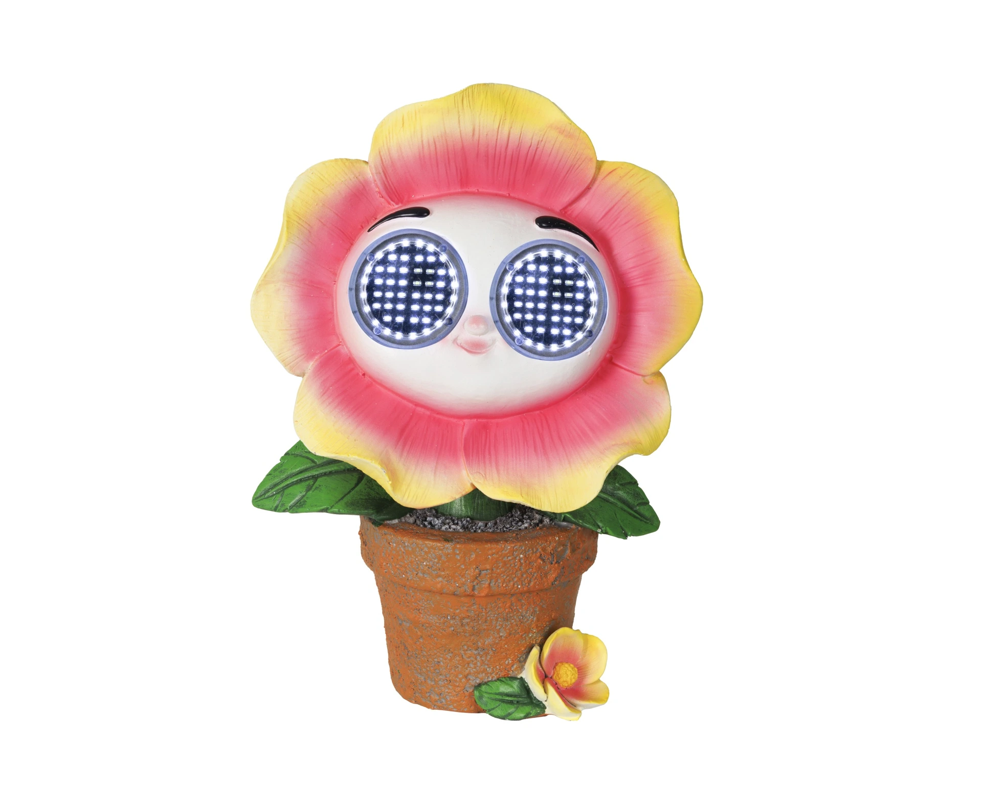 Breng sfeer en een speels accent in je tuin met deze unieke solar bloemlamp. Dit vrolijke tuinornament in de vorm van een bloem met een gezichtje zorgt overdag voor een decoratief detail en komt ’s avonds tot leven dankzij de opvallende bewegende LED-verlichting in de ogen.