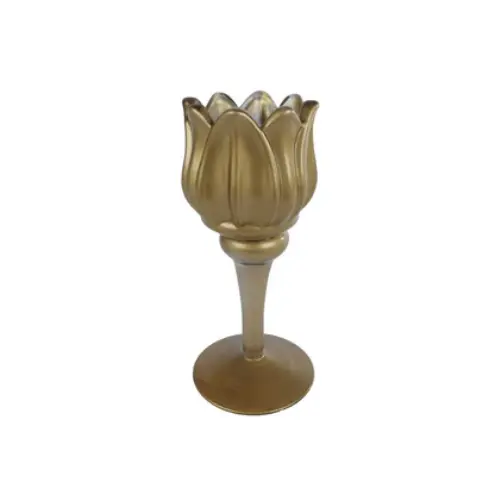 Schrijf zelf een recensie over "Theelichthouder Tulip Glas 8x8x16cm Goud"
