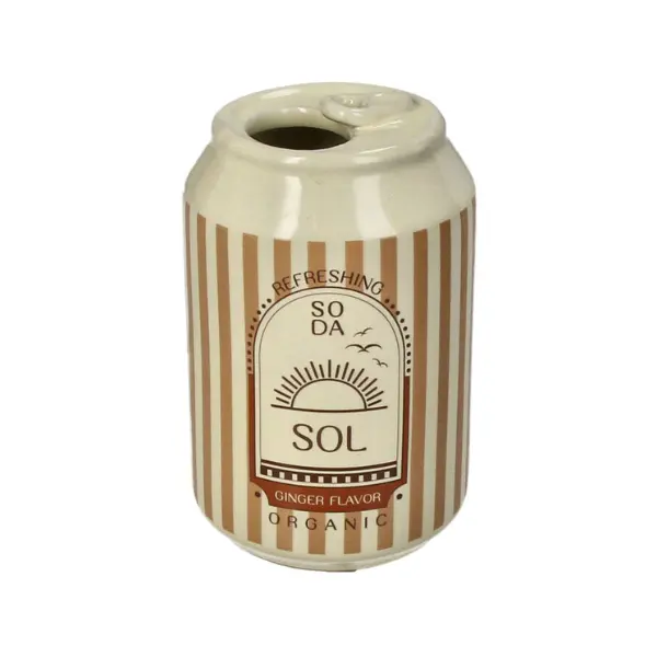 Deze aardewerken vaas in frisdrankblikvorm voegt een speelse noot toe aan je decor.