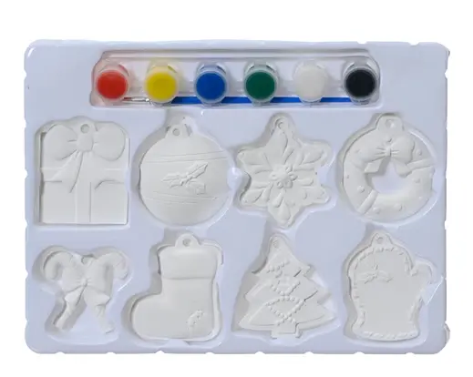 Laat je creativiteit de vrije loop met deze verfset voor kerstfiguur ornamenten! Deze set bevat 8 kunststof kerstfiguren die je kunt personaliseren en versieren. Ideaal voor kinderen en volwassenen, deze doe-het-zelf decoraties brengen een persoonlijke touch aan je kerstversiering. De set bevat verschillende kerstfiguren, die perfect zijn voor het toevoegen van een unieke en kleurrijke sfeer aan de kerstboom of als leuke knutselactiviteit tijdens de feestdagen.