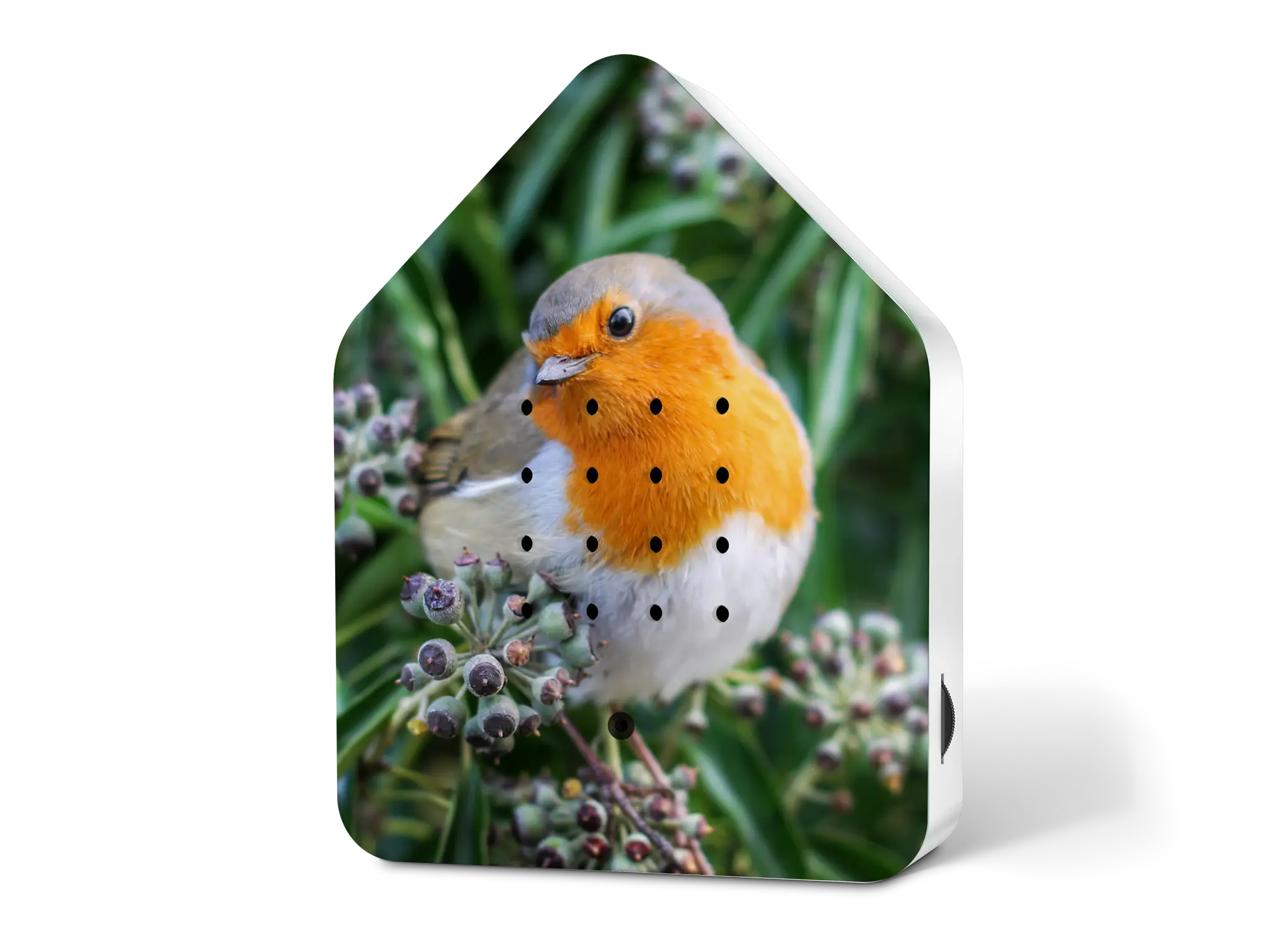 Dit fraaie huisje van Zwitscherbox siert elke kamer in je huis! Wanneer je langs de sensor loopt, kun je ontspannen bij het geluid van bosvogels.